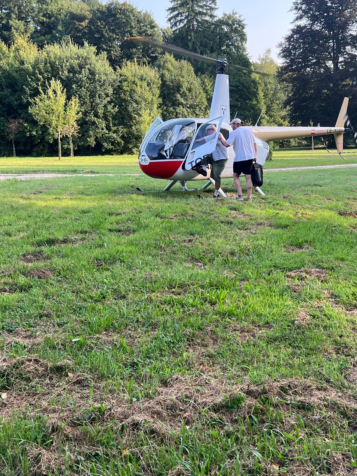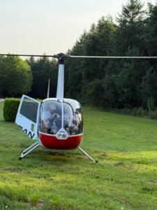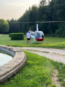Un journaliste en reportage à Torgny au vignoble Poirier Loup oublie ses clés au château et les récupère en hélicoptère.